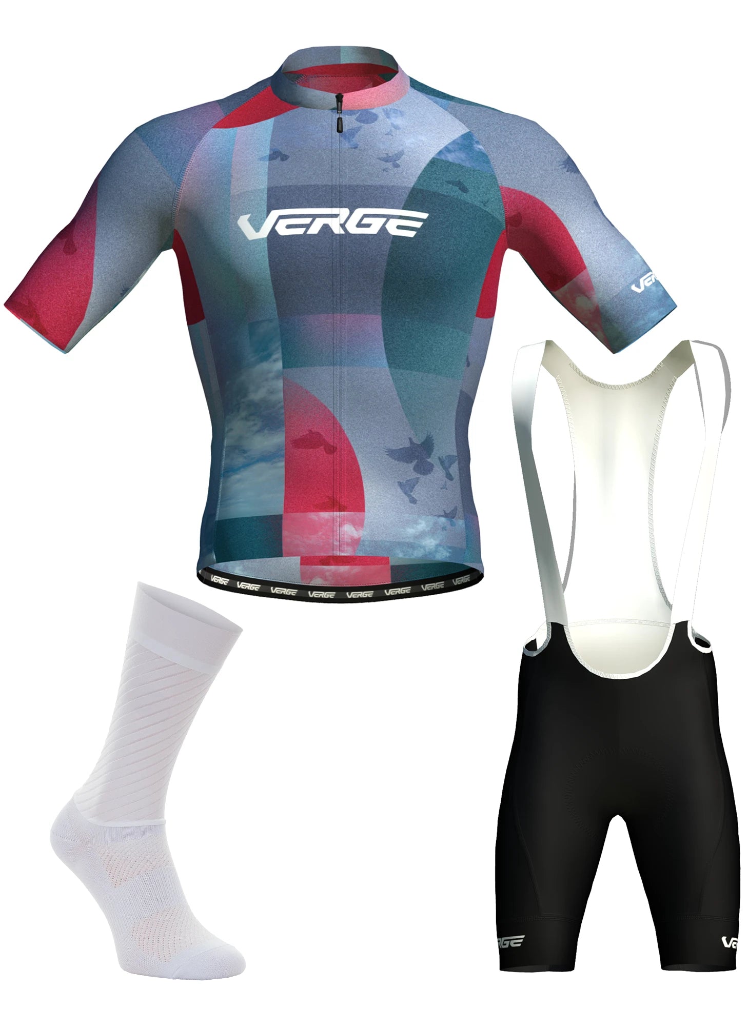 Inspired by the final stage of the 2025 Tour, where the world’s best riders sprint down the cobblestones of the Champs-Élysées, this jersey celebrates the elegance and triumph that define cycling’s most iconic finish. A visual tribute to the City of Light, the design blends deep navy, sky blue, and rich red in a modern, abstract composition. Subtle imagery — including silhouettes of doves and open skies — evokes freedom, flight, and the poetic beauty of Paris itself. The layered arcs and soft transitions hint at architecture, motion, and light, creating a sophisticated and artistic look worthy of a champion’s ride. Crafted with Verge’s elite performance materials, the Paris Jersey is tailored for those who chase speed and style. Whether you’re racing to the line or cruising through your favorite city loop, this jersey brings a touch of Tour-worthy flair to every ride. Finish in style. Ride Paris.