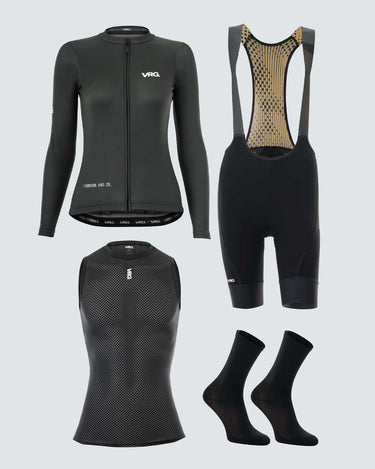 The VRG Transition Bundle is your ally for changing seasons. This versatile collection includes our Thermal Long Sleeve Jersey, Bib Shorts, Socks, Baselayer, and Neck Warmer — designed to adapt as temperatures shift throughout your ride. Layer up at dawn, adjust as the day warms, and stay comfortable no matter what comes your way.
